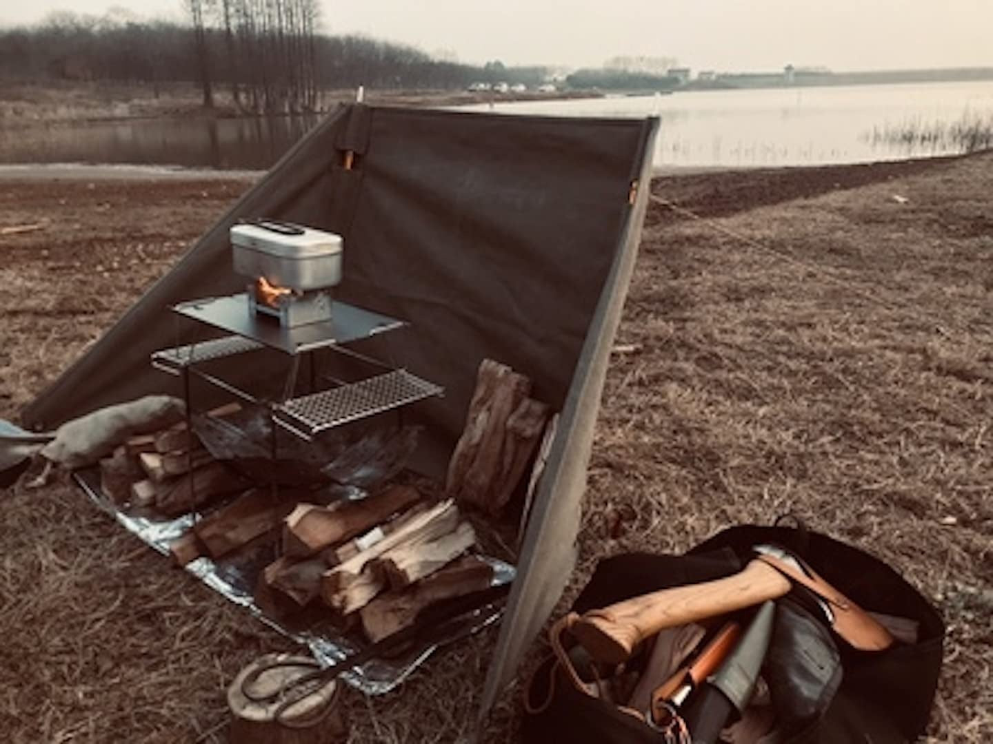 風から焚き火を守り暖かさを保つ