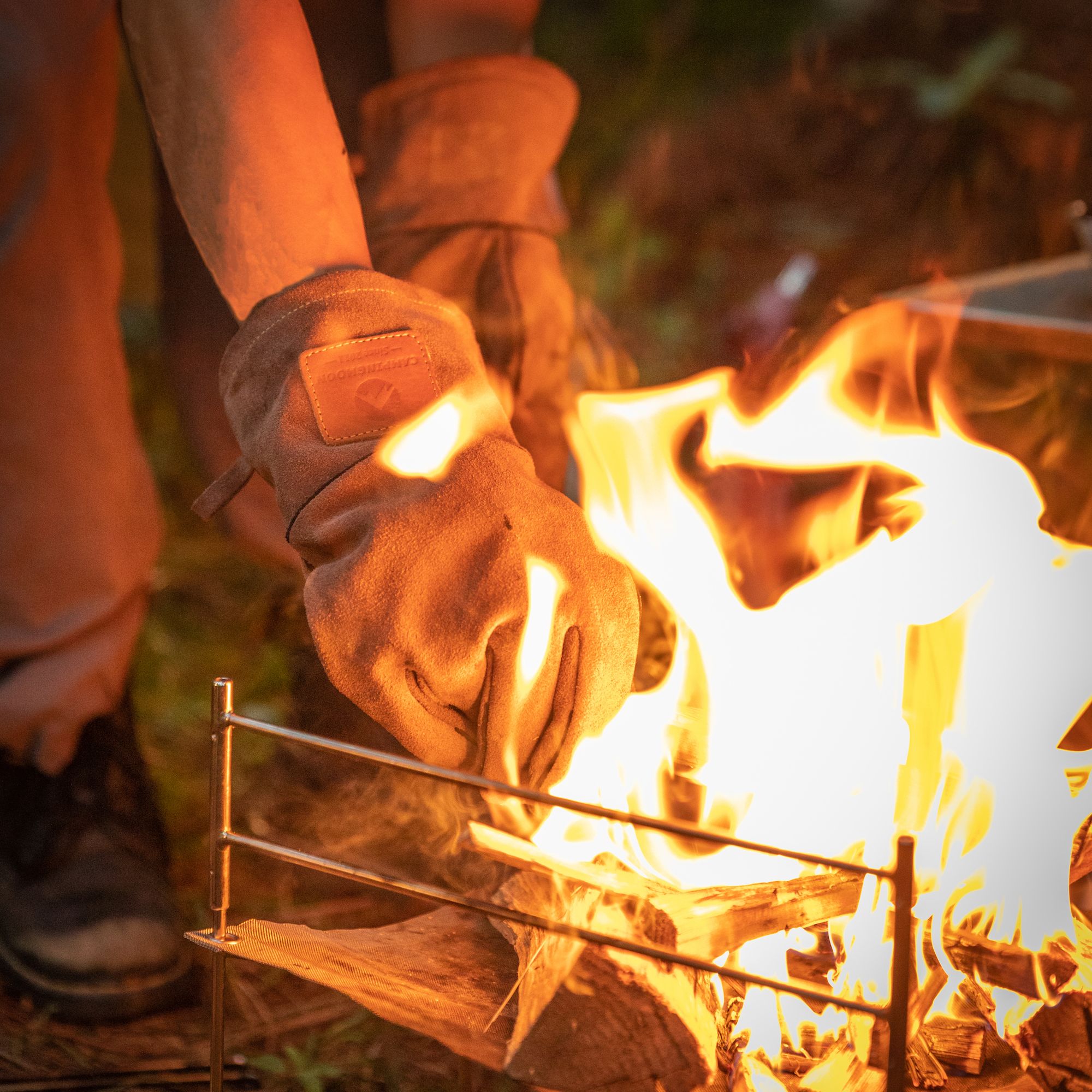 焚き火の熱から手を守る高い耐熱性