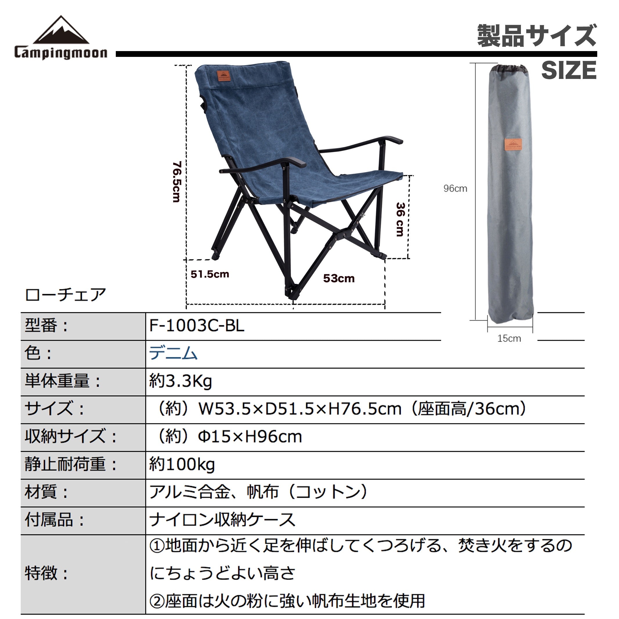焚き火ローチェア 火の粉に強い帆布生地 F-1003C-BL
