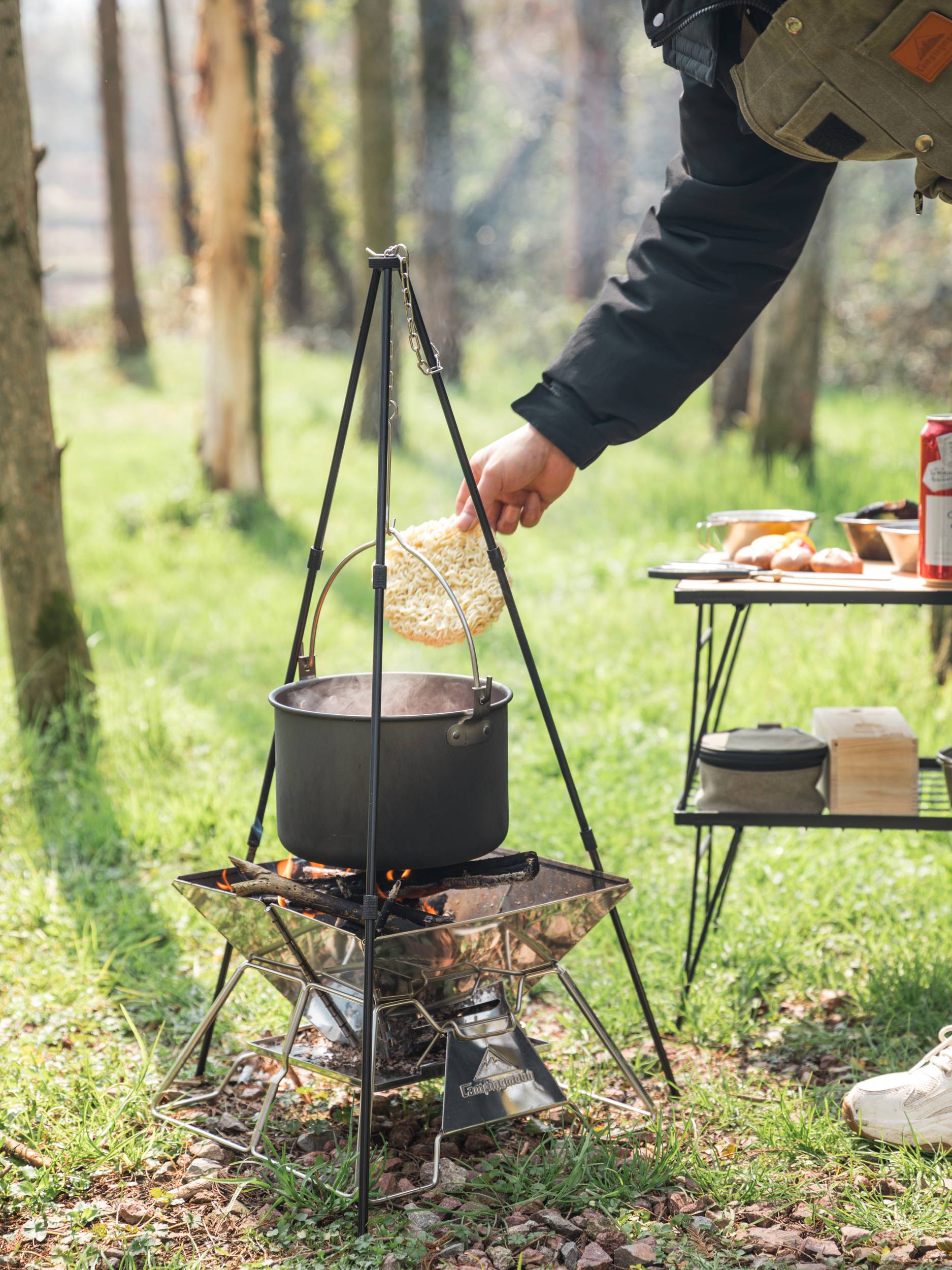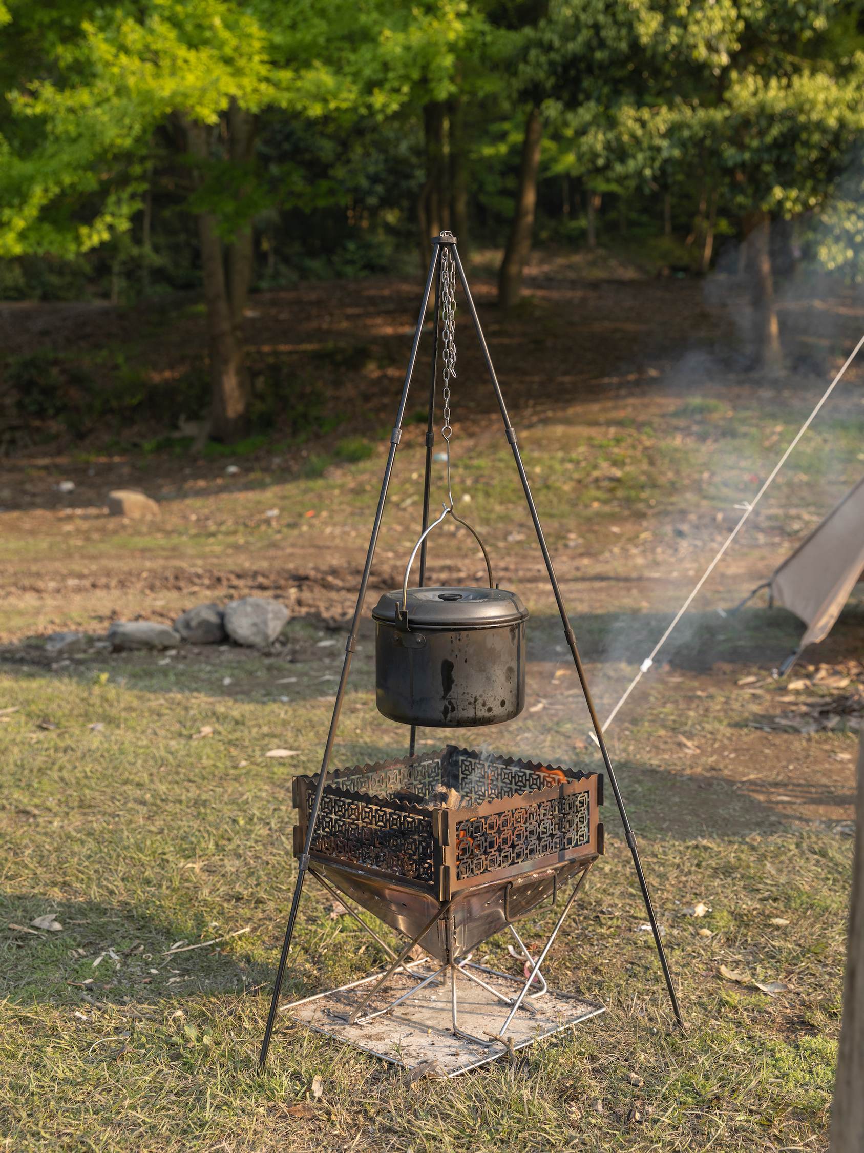 トライポッドで吊り下げ調理