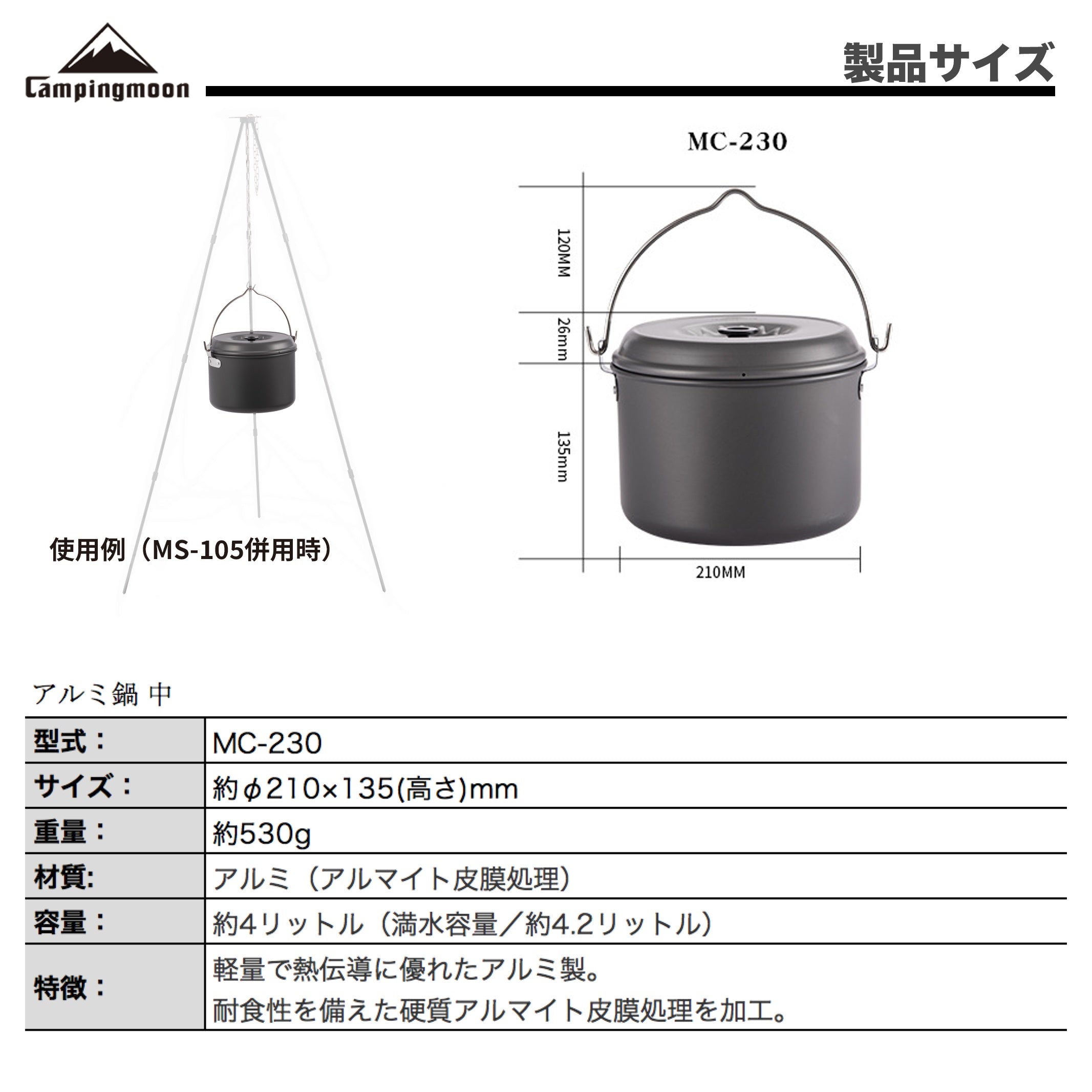 アウトドア用鍋 軽量アルミ製 MC-230