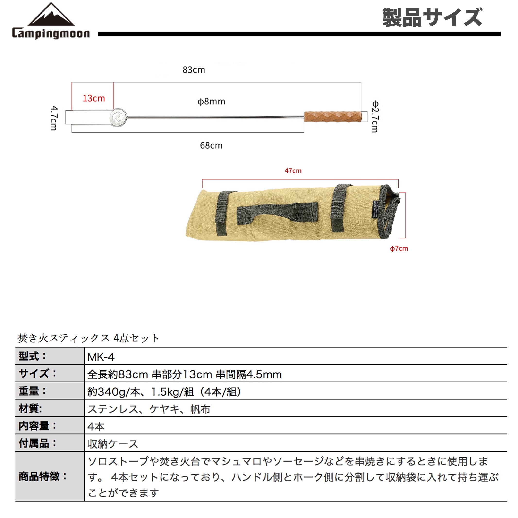 焚き火ロースティングスティック 分割式木製ハンドル MK-4