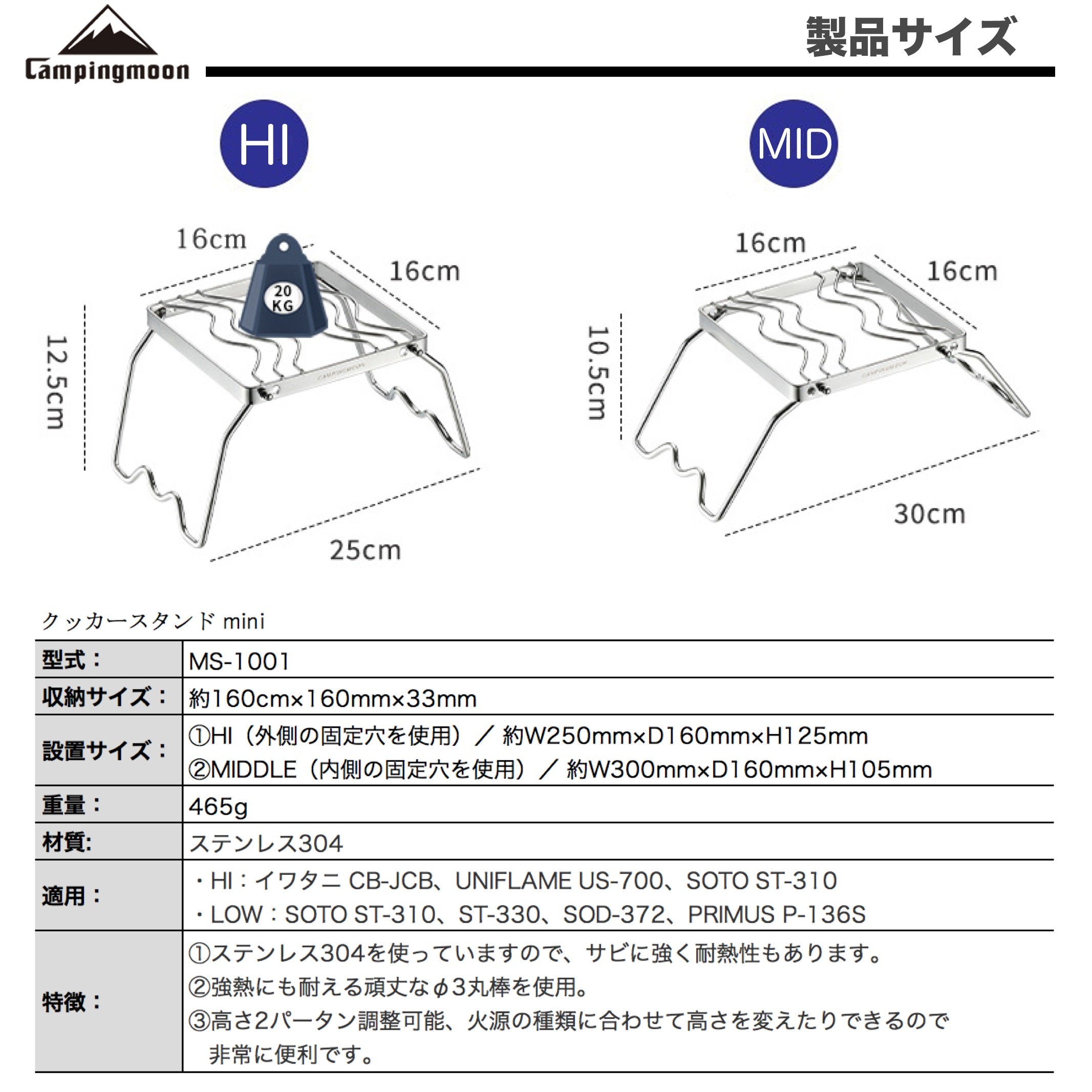 クッカースタンド 高さ2段階調整 MS-1001