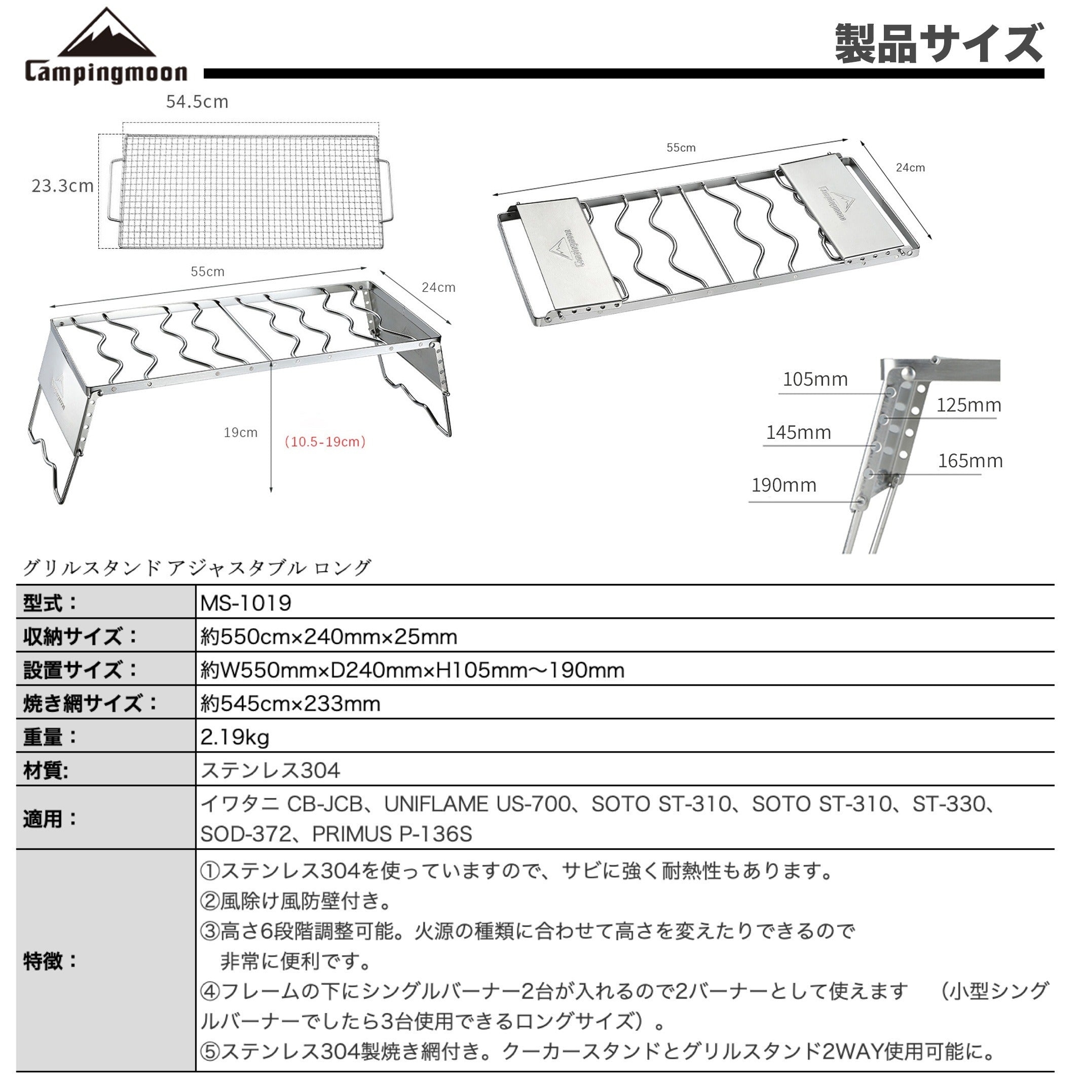 クッカースタンド 高さ調整ロングタイプ MS-1019