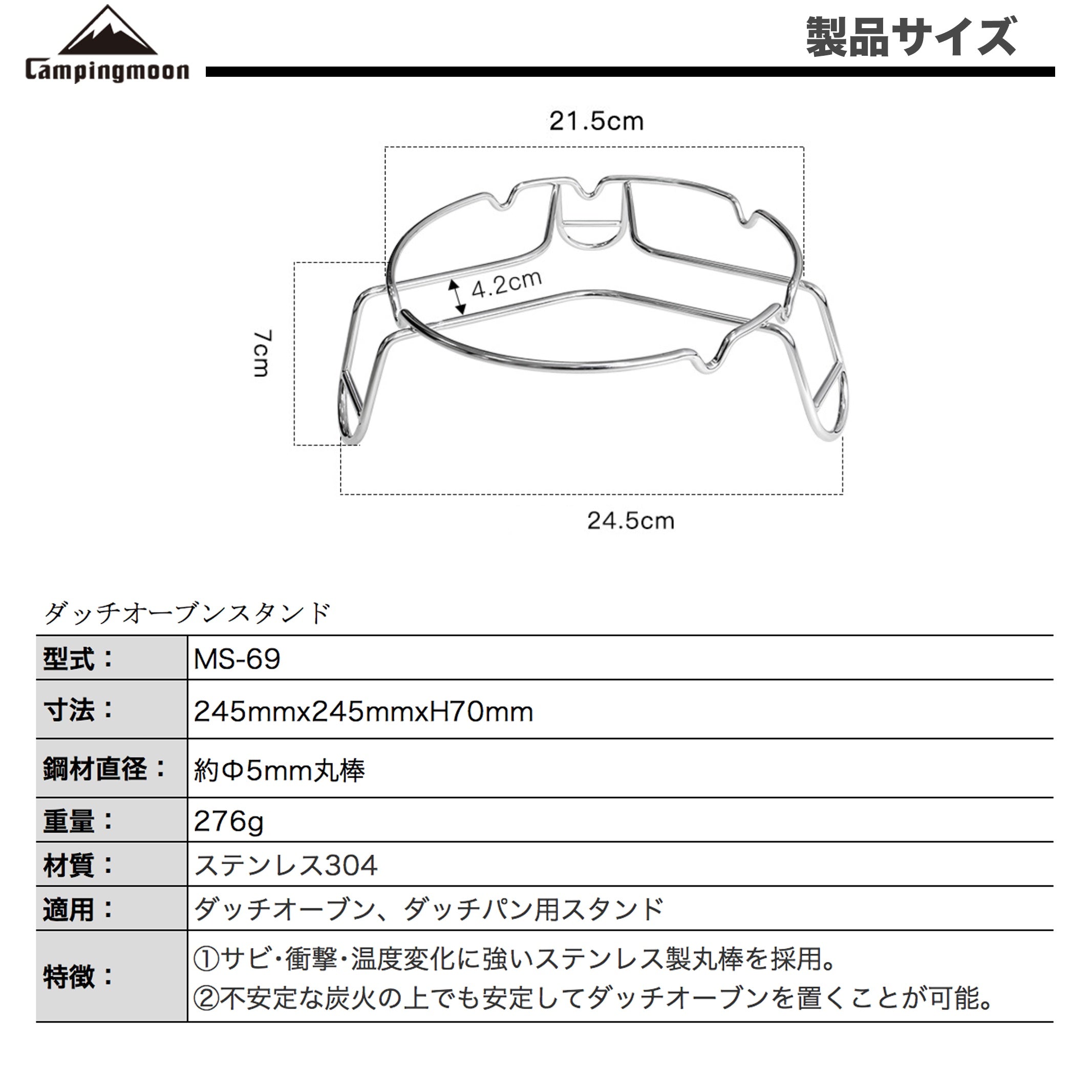 ダッチオーブンスタンド オールステンレス304製 MS-69