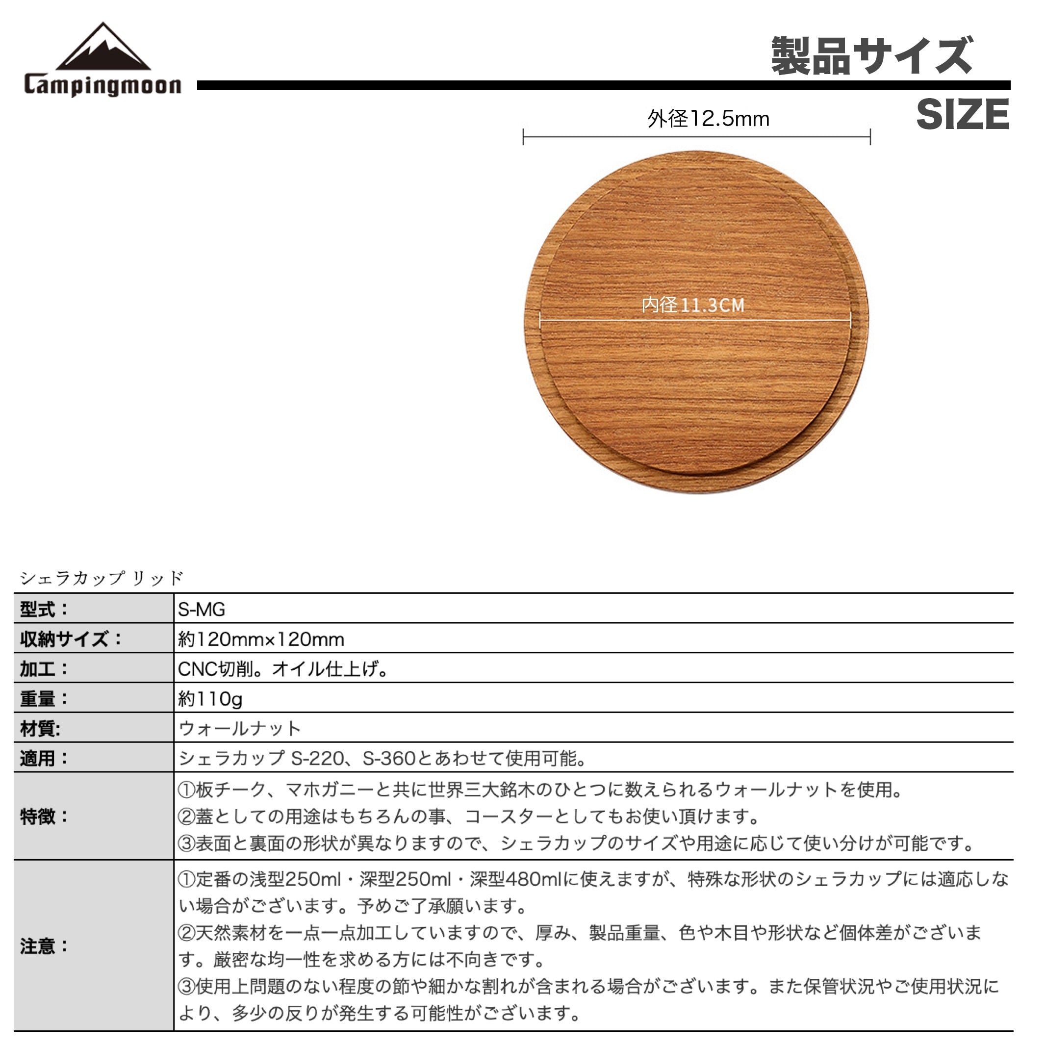 シェラカップリッド ウォールナット無垢材 S-MG