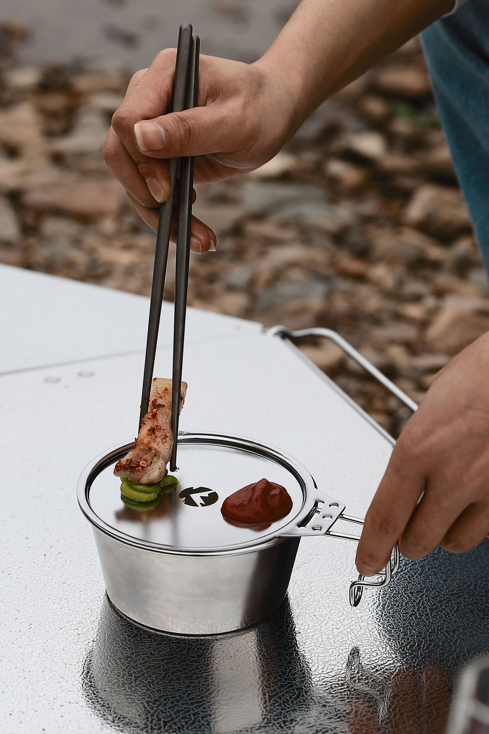 調理中や食事の合間に蓋をすることで、焚き火の灰、砂埃、虫などの異物混入を防ぎます。屋外でも衛生的な食事を楽しむための必需品です。