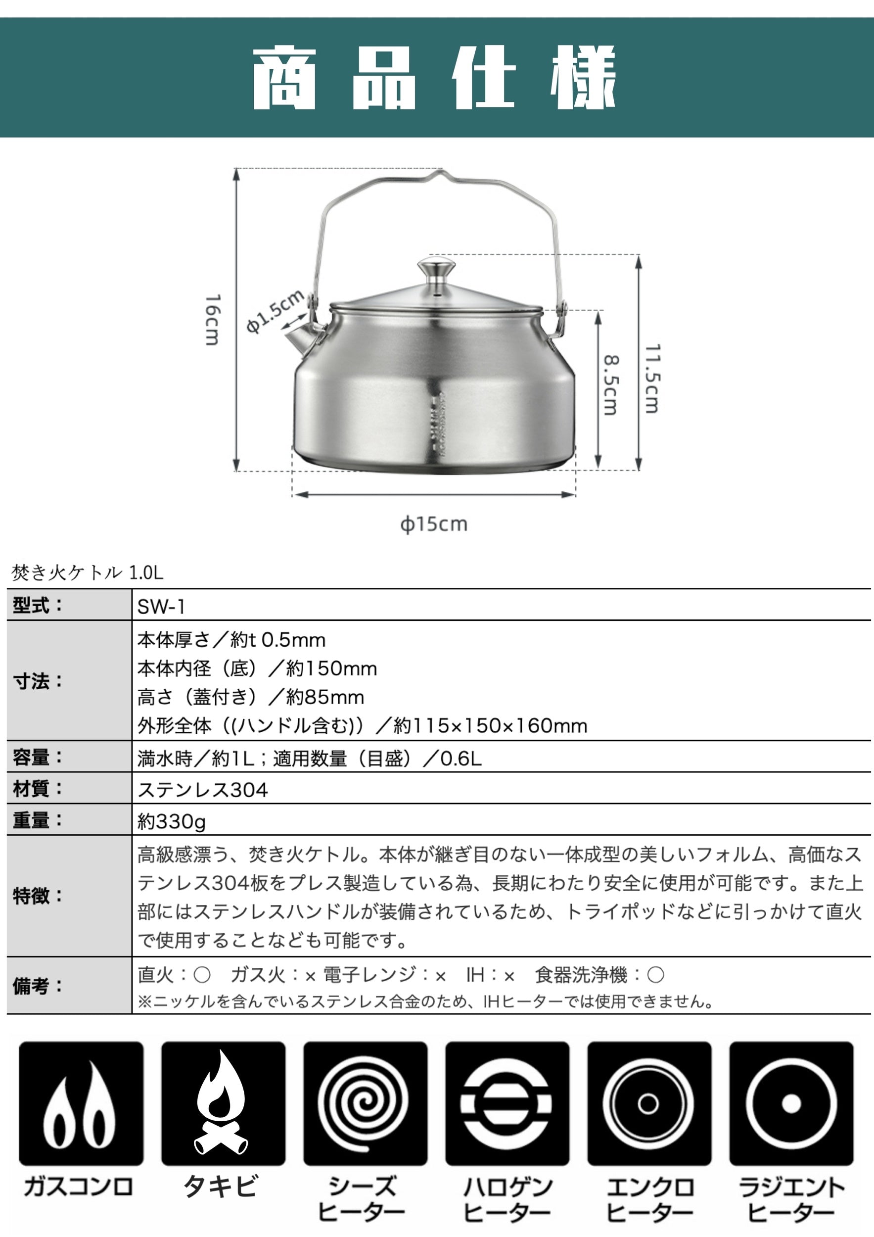 焚き火ケトル 一体成型ステンレス SW-1