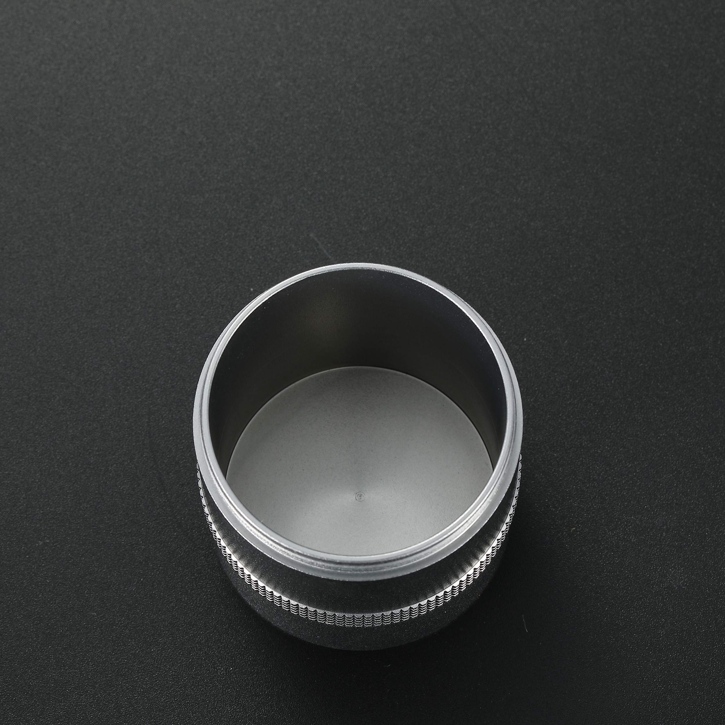 粉受けカップのローレットリングが手にフィット。保持しやすく、挽いた粉をこぼしにくい設計です。
