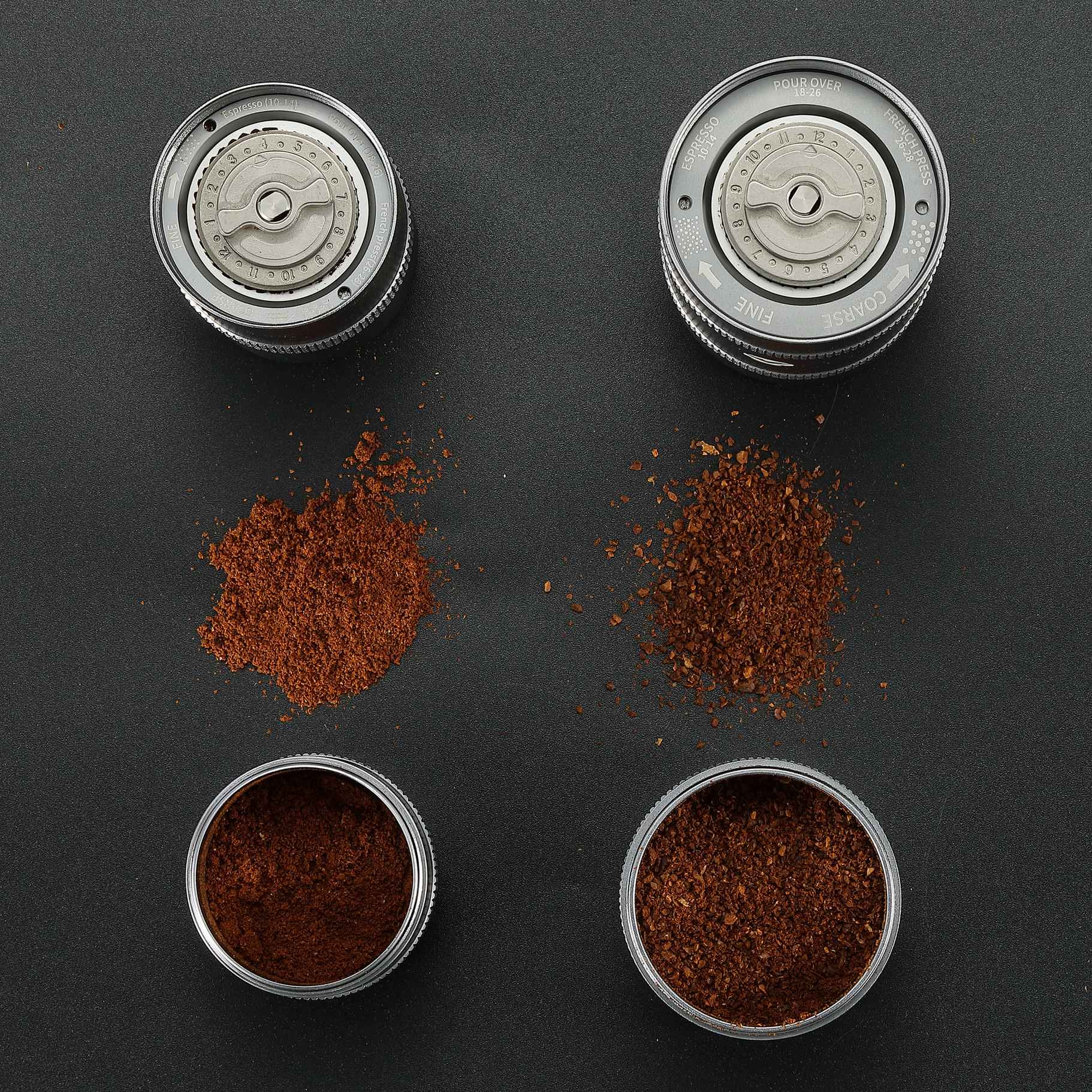 挽き目の違いが一目でわかる設計。抽出器具に合わせて粒度を再現しやすく、幅広いコーヒースタイルに対応します。