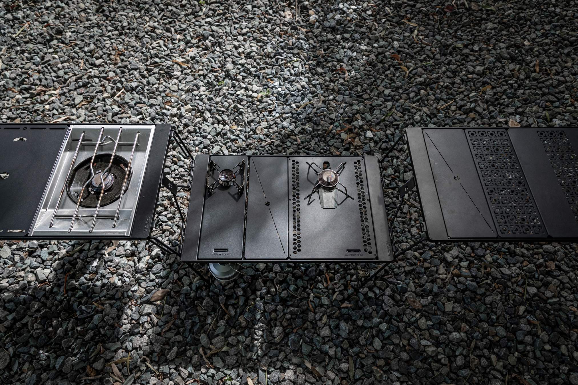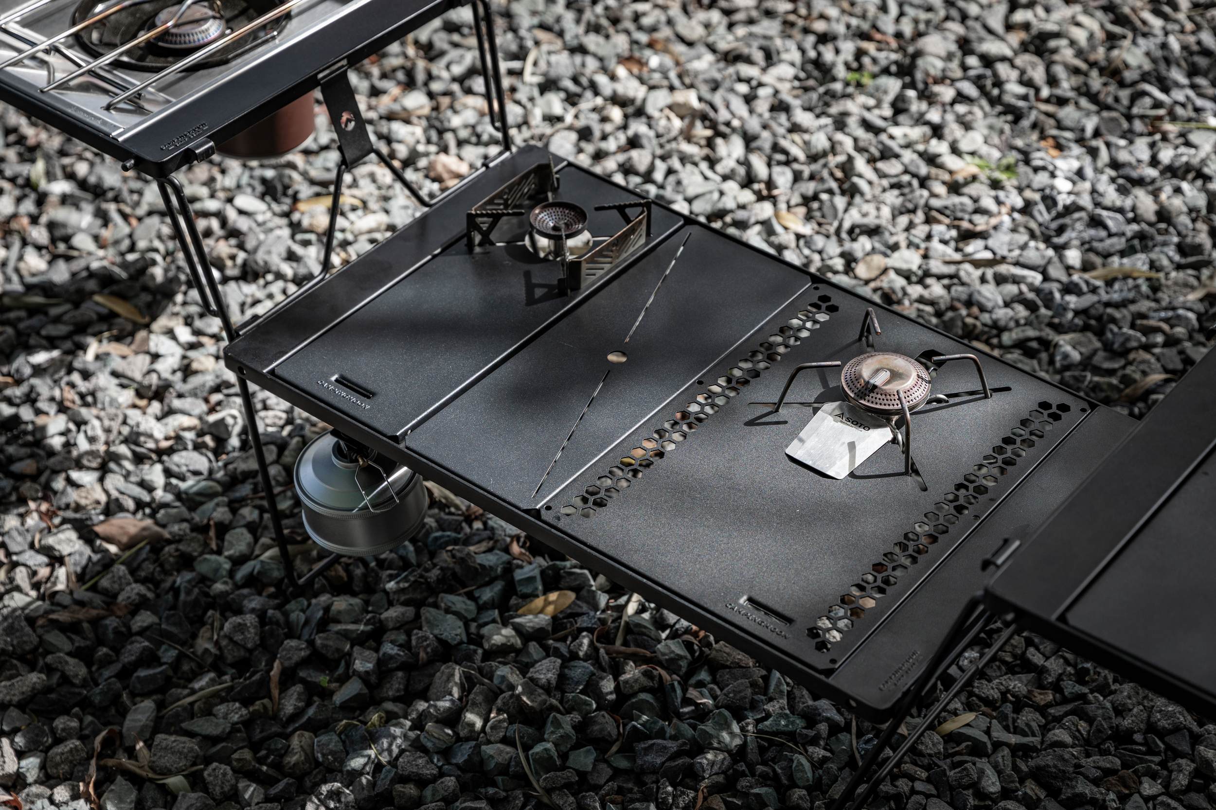 幅約12.5cmのハーフユニットサイズは、テーブル上の隙間を埋めるのに最適です。バーナーや他の天板と組み合わせることで、自分好みの配置を作れます。