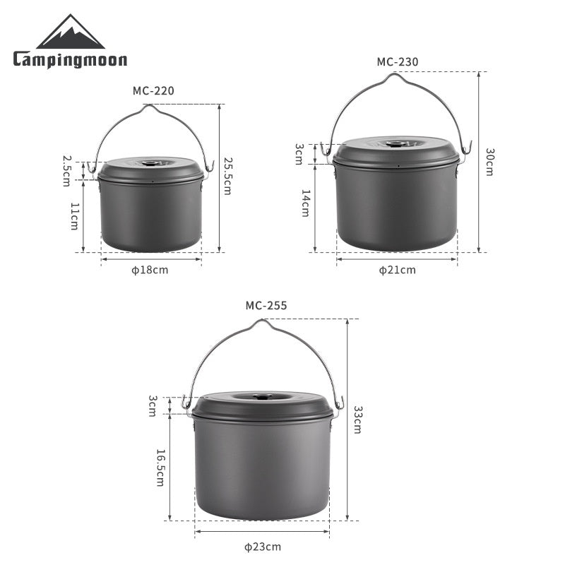 表面にハードアノダイズド加工を施し、一般的なアルミ鍋よりも耐摩耗性と耐腐食性を大幅に向上させました。焚き火の煤汚れや摩擦に強く、タフな環境でも長く愛用できます。