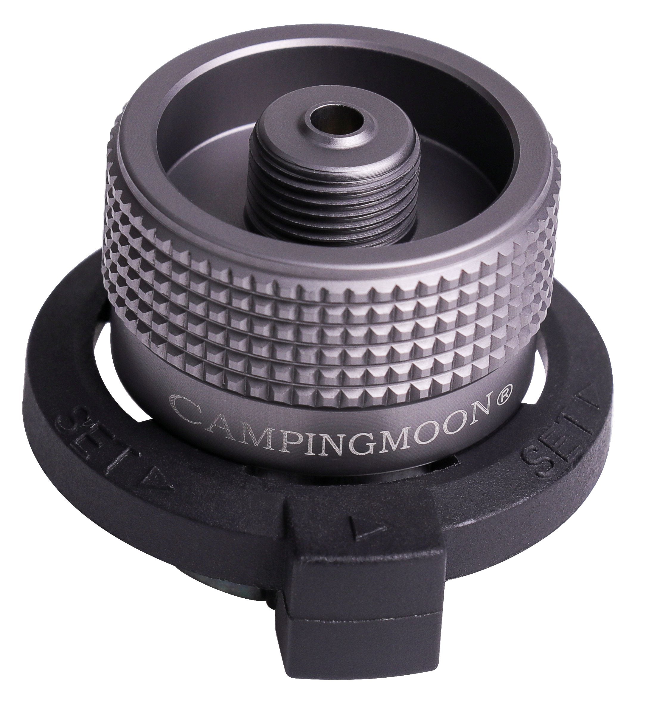 アダプターをCB缶の切り欠きに合わせて差し込み、回転させることでロックがかかる仕組みです。確実に固定されるため、使用中の脱落やガス漏れのリスクを低減します。